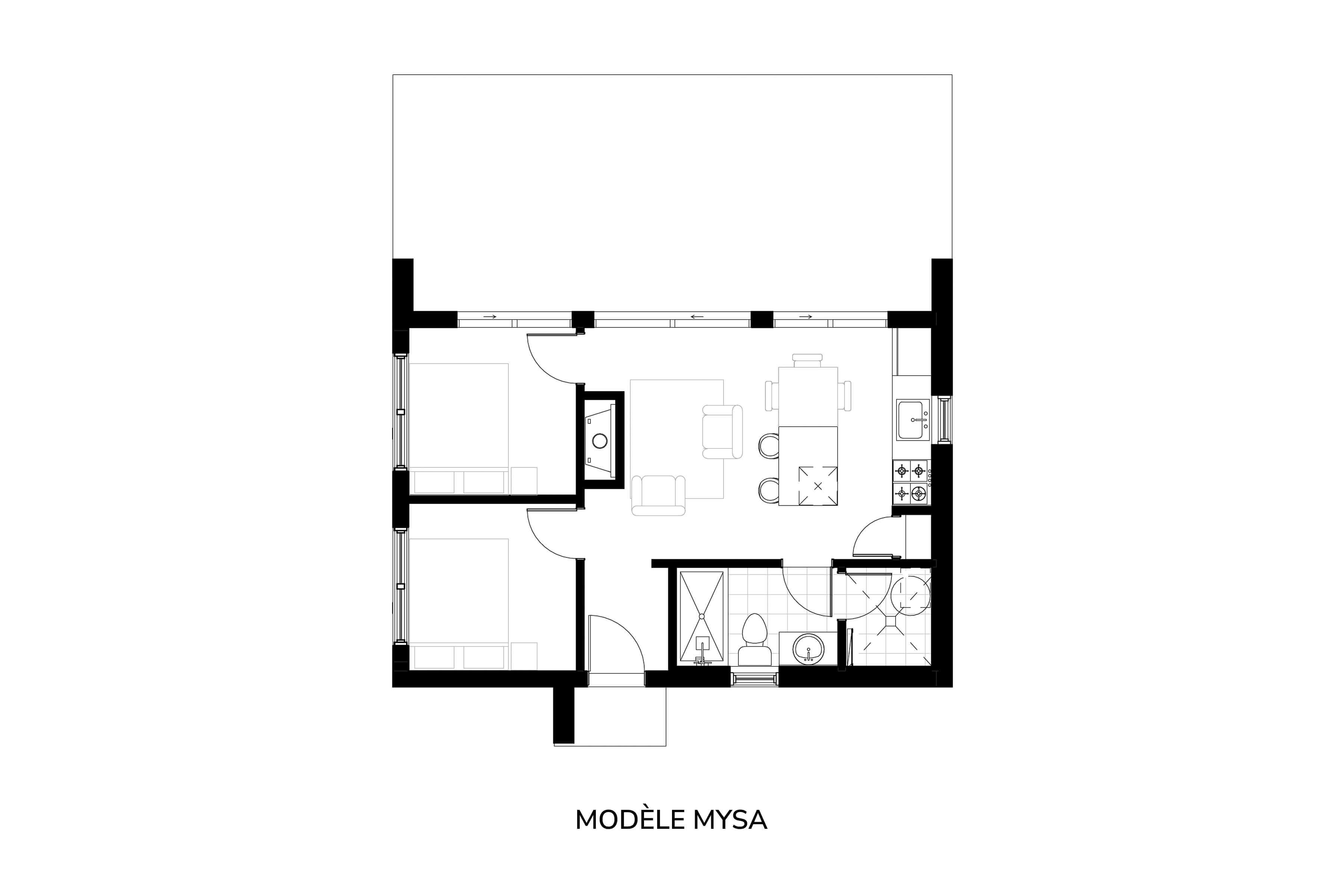L’esprit nordique dans sa forme la plus épurée. Le ALV mise sur une aire ouverte optimisée où chaque espace est pensé pour offrir confort et fluidité. Son design minimaliste est rehaussé par une touche unique : les portes-patios dans les chambres qui donnent directement accès au balcon. Un lien privilégié avec l’extérieur, pour profiter de la nature dès le réveil.